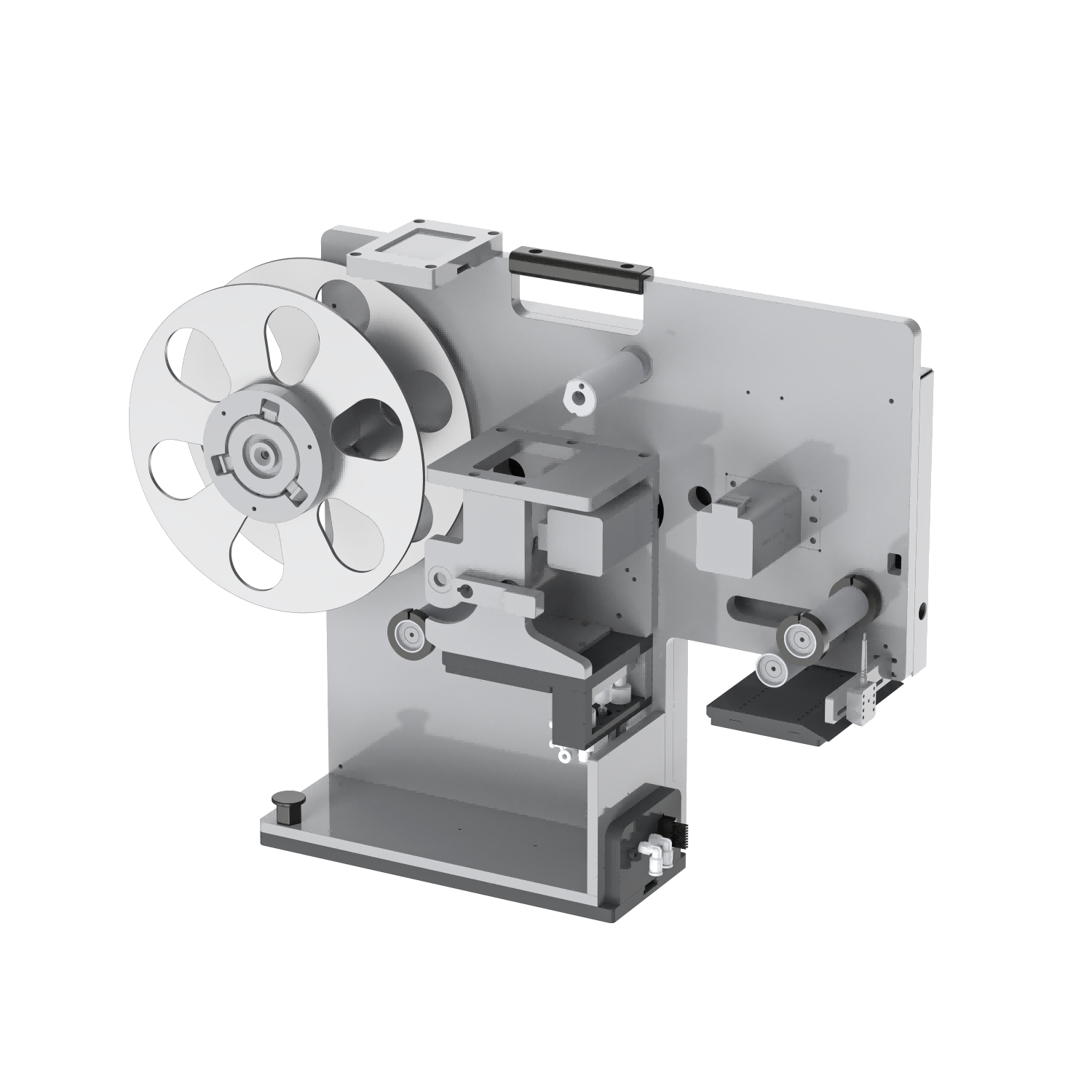 反向剥标飞达采用先吸取后剥离的工作原理,物料输送时胶面朝上,吸盘先吸取物料,飞达再进行物料剥离,送料、剥料速度快,后撤距离可参数化设置。应用于卷料辅料的剥离。